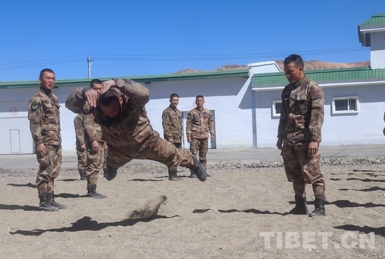 圖為(wei) 阿裏軍(jun) 分區某部官兵進行倒功訓練