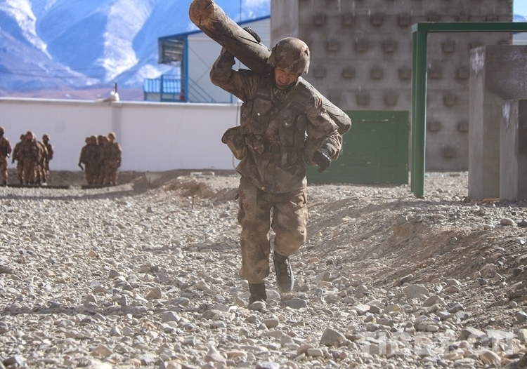 圖為(wei) 阿裏軍(jun) 分區某部官兵進行負重訓練