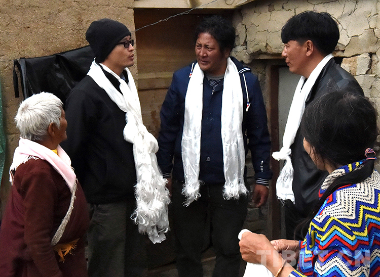 這是中國石油援藏幹部、時任雙湖縣委常務副書(shu) 記胡勇(左二)在嘎措鄉(xiang) 看望患有精神障礙疾病的牧家女,並與(yu) 鄉(xiang) 幹部商量如何送她到近千公裏外的拉薩去治病(唐召明2017年7月26日攝)