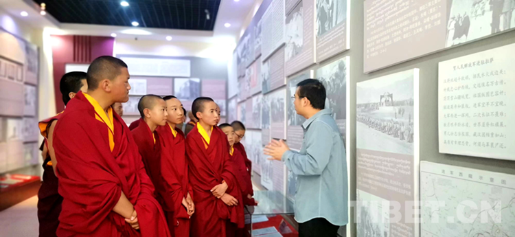 在譚冠三紀念園參觀時,少年活佛在譚冠三將軍(jun) 陵墓前集體(ti) 默哀並敬獻花朵,向革命先輩致以崇高敬意。隨後,在紀念園相關(guan) 負責人的講解下認真傾(qing) 聽譚冠三將軍(jun) 紮根邊陲、艱苦奮鬥的感人事跡。參觀期間,少年活佛們(men) 被一幅幅圖片、一個(ge) 個(ge) 生動故事深深吸引,對革命先烈和十八軍(jun) 戰士在解放西藏、建設西藏中形成的“老西藏精神”有了更加深刻的領會(hui) 。