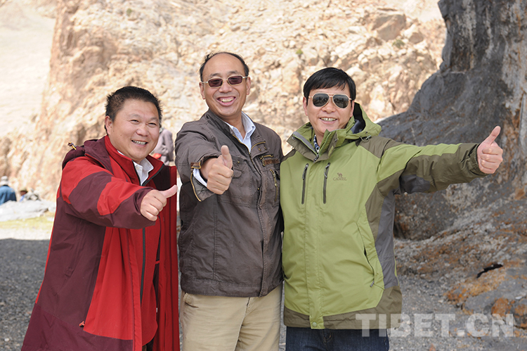 這是中國石化援藏幹部王鵬雁(左)與(yu) 一同援藏的常務副縣長王飛(右)及來采訪的新華社記者唐召明(中)合影留念(王琪2015年5月20日攝)