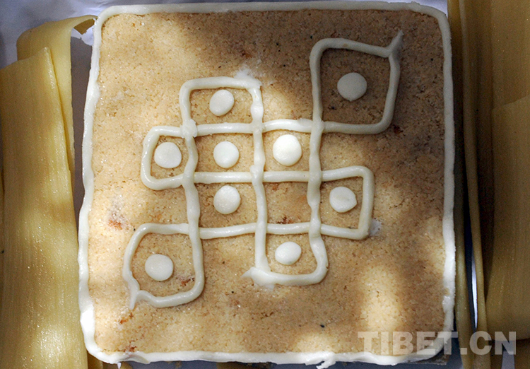 這是使用酥油、奶渣等混合製成的食品“褪”。它類似年糕,酥軟香甜可口(唐召明2013年7月25日攝)