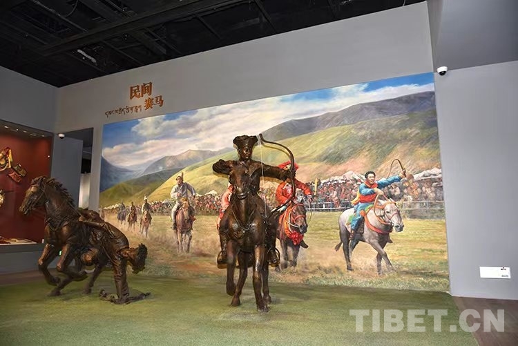 圖為(wei) 西藏博物館《離太陽最近的人——西藏民俗文化展》展現的民間賽馬藝術 攝影:王媛媛