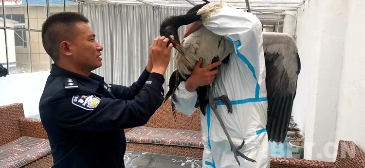 圖為(wei) 馬攸橋邊境檢查站民警在檢查丹頂鶴受傷(shang) 情況 攝影:劉紅