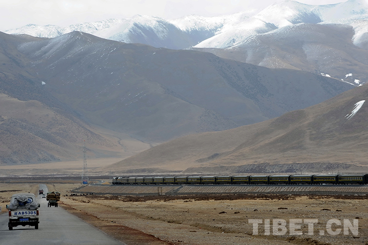 長長的列車在翻越了青海、西藏的天然分界線唐古拉山後,即進入西藏境內(nei) 的那曲地區(現那曲市)安多縣。