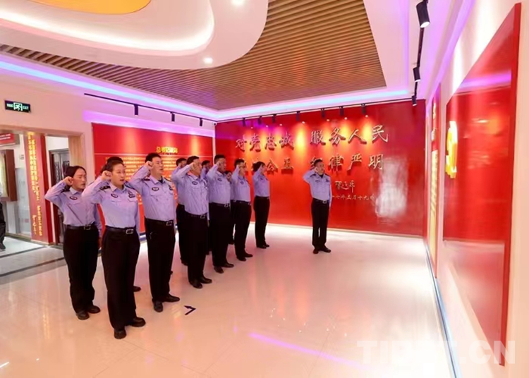 圖為(wei) 黨(dang) 員民警在西藏公安史展館重溫入黨(dang) 、入警誓詞