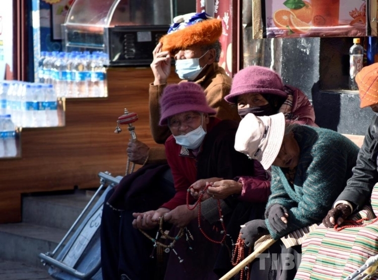圖為(wei) 八廓街曬太陽的群眾(zhong)