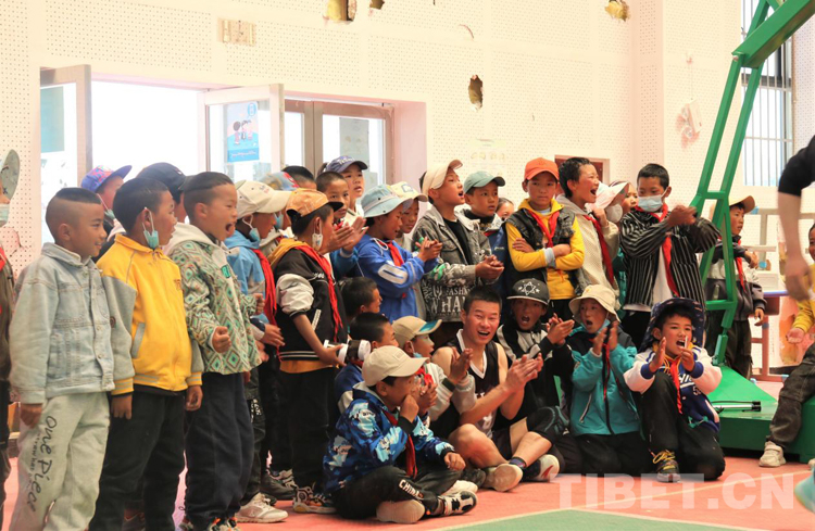 這次比賽在崗巴縣的一所學校的籃球館裏舉(ju) 行,比賽還沒有開始,孩子們(men) 就把館內(nei) 圍得“水泄不通”,大喊著:“劉科加油,劉科加油!”民警黃列平不情願地和孩子們(men) 說:“怎麽(me) 隻對劉科喊加油啊,我們(men) 也要!”孩子們(men) 嘿嘿笑了兩(liang) 聲,等到劉科休息換人的時候,呼喊聲改成了:“劉科隊加油!”
