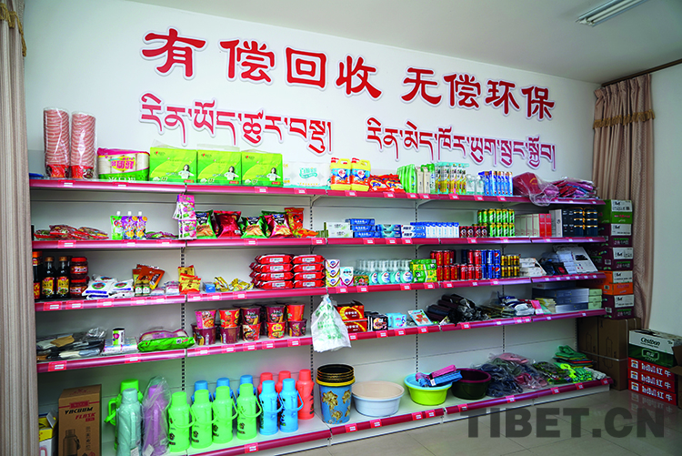 嘎拉村“綠色銀行”兌(dui) 換商店裏的可兌(dui) 換商品品種越來越多了。益西加措 攝