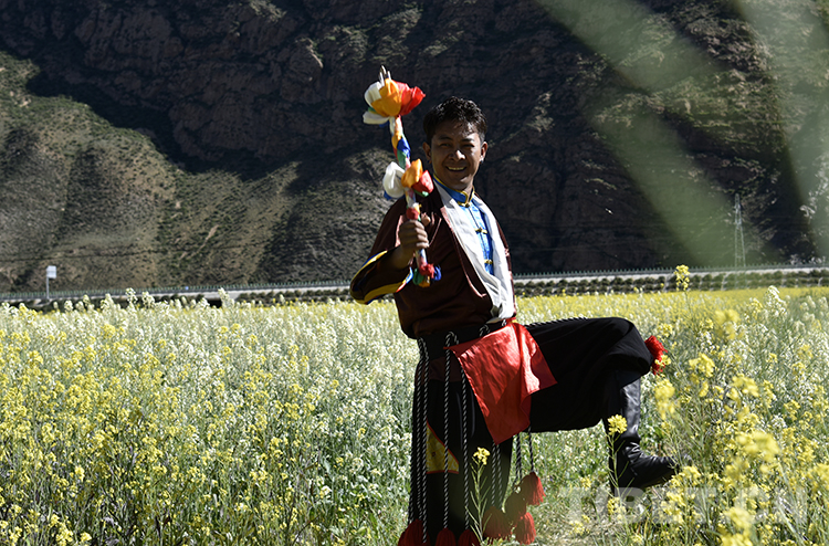 圖為(wei) 墨竹工卡縣鬆讚文化旅遊節暨第五屆油菜花節開幕式上的開場舞蹈《紮西雪巴》 攝影:王媛媛
