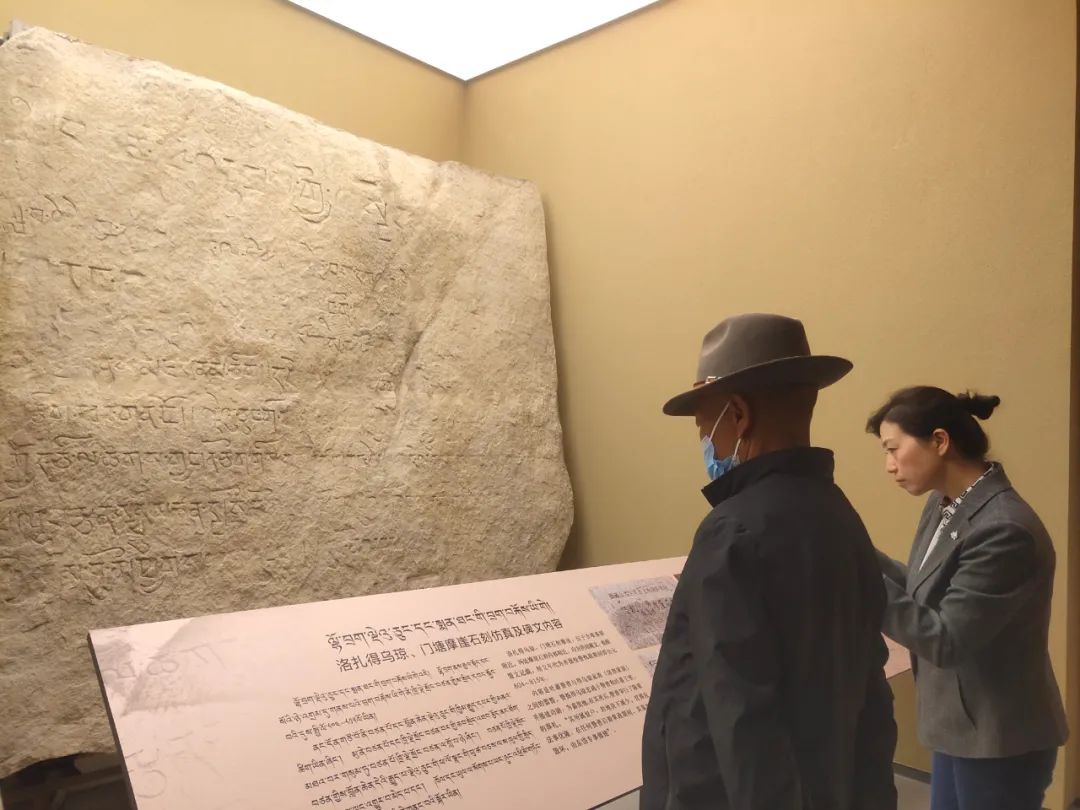 圖為(wei) 參觀者在山南市博物館駐足了解洛紮得烏(wu) 窮、門塘摩崖石刻內(nei) 容 圖片來源:西藏商報