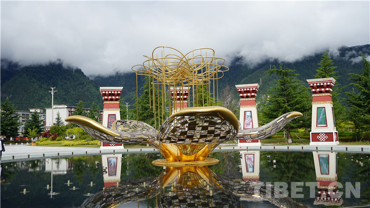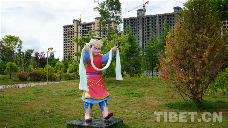 圖為(wei) 林芝市工布公園裏穿著工布藏裝的雕像,麵帶微笑、手捧哈達、麵向公園之外歡迎國內(nei) 外朋友的到來 攝影:旦曲