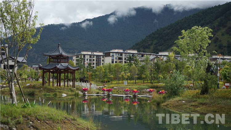 圖為(wei) 林芝市工布公園的亭台和流水 攝影:旦曲
