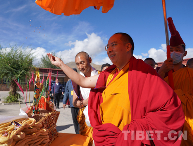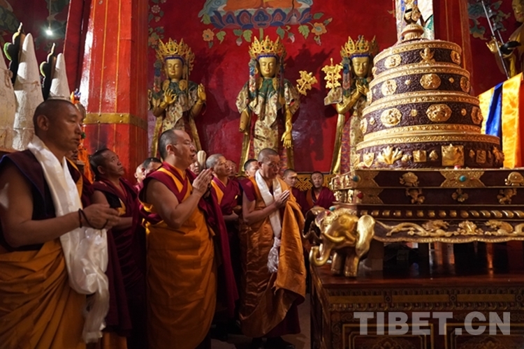當日,全國政協常委、中國佛教協會(hui) 副會(hui) 長、中國佛教協會(hui) 西藏分會(hui) 會(hui) 長班禪額爾德尼•確吉傑布前往山南市隆子縣紮果寺禮佛講經。