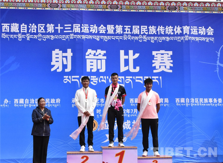 圖為(wei) 7月29日,男子個(ge) 人70米雙輪賽頒獎現場,中間為(wei) 冠軍(jun) 選手林芝市代表團運動員嘎瑪江村,其右為(wei) 亞(ya) 軍(jun) 選手拉薩市代表團運動員瓊達次仁,其左為(wei) 季軍(jun) 選手教育代表團運動員旦增羅布 攝影:拉姆