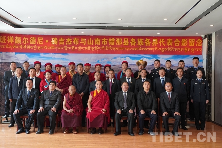 圖為(wei) 班禪與(yu) 錯那縣各族各界代表合影留念 攝影:王淑