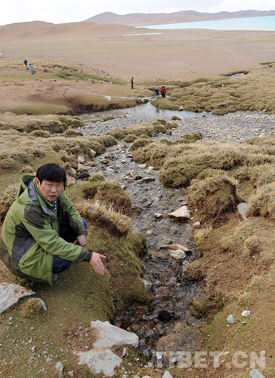 這是王飛在班戈縣青龍鄉(xiang) 六村“浩秀泉”水旁,介紹班戈縣與(yu) 中國石化將合作開發的冰川礦泉水項目(唐召明2015年5月20日攝)
