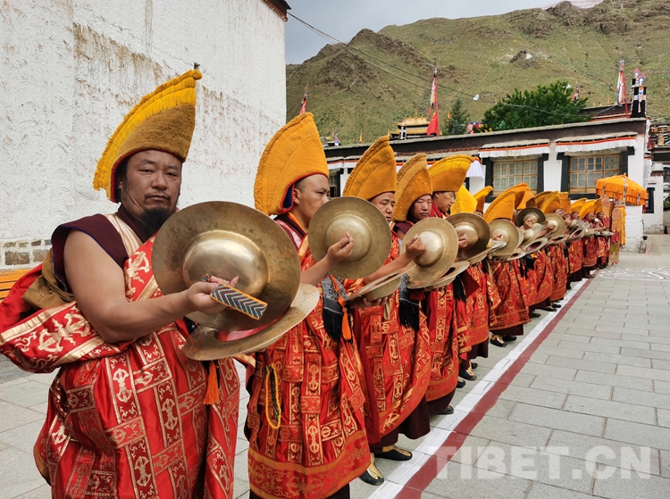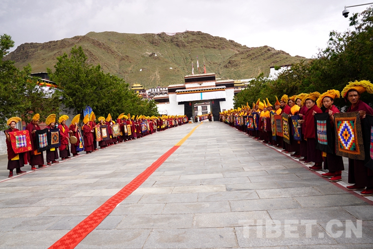 圖為(wei) 紮什倫(lun) 布寺僧眾(zhong) 列隊迎接班禪 攝影:王淑