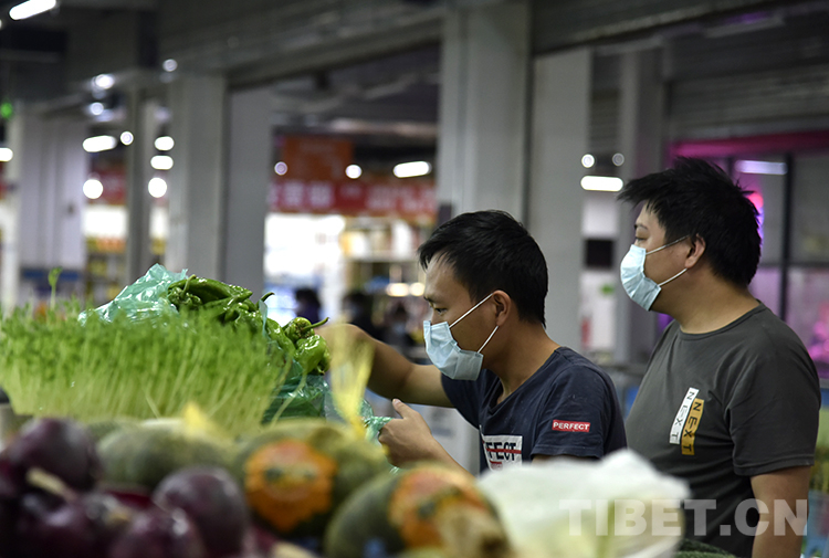 圖為(wei) 8月9日,市民在拉薩柳梧農(nong) 貿市場挑選蔬菜 攝影:王媛媛
