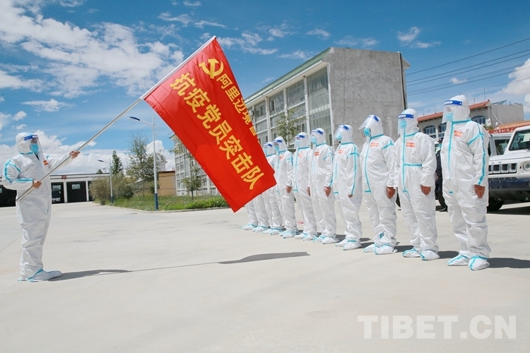 圖為(wei) 阿裏邊境管理支隊“抗疫黨(dang) 員突擊隊”揮旗出發 攝影:張拴根