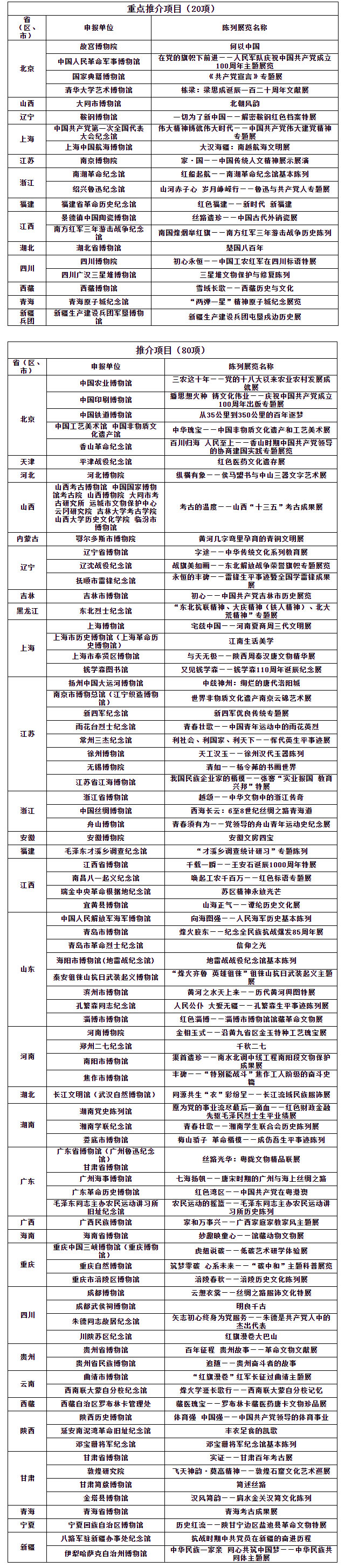 據國家文物局介紹,為(wei) 貫徹落實習(xi) 近平總書(shu) 記關(guan) 於(yu) 文物工作係列重要論述精神,充分發揮博物館在弘揚中華優(you) 秀傳(chuan) 統文化、培育社會(hui) 主義(yi) 核心價(jia) 值觀中的陣地作用,自2015年起,國家文物局連續8年在全國範圍內(nei) 組織開展“弘揚中華優(you) 秀傳(chuan) 統文化、培育社會(hui) 主義(yi) 核心價(jia) 值觀”主題展覽項目征集推介工作,並連續4年納入中央精神文明建設指導委員會(hui) 年度重點工作,行業(ye) 引領示範作用與(yu) 社會(hui) 影響力日益提升。2022年度征集工作啟動後,各地積極響應,共收到符合申報條件的展覽項目266個(ge) ,申報省份實現全覆蓋,申報數量創下新高。本著公開、公平、公正的原則,經專(zhuan) 家評議、投票,確定對100個(ge) 展覽項目予以集中推介,其中前20位予以重點推介。(新利平台記者/劉莉)