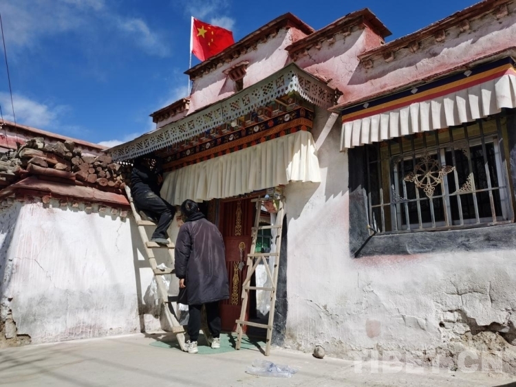 藏曆水虎新年來臨(lin) 之際,查斯和次德吉一起更換香布 攝影:歐帆