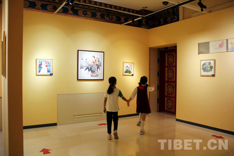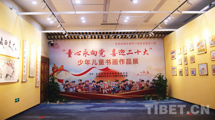 圖為(wei) 西藏文化博物館“童心永向黨(dang) ,喜迎二十大”少年兒(er) 童書(shu) 畫作品展序廳 攝影:劉莉