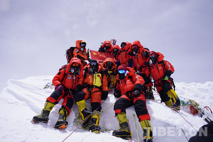圖為(wei) 2020年珠峰高程測量登山隊隊員在珠峰合影留念 攝影:西藏登山學校 紮西次仁