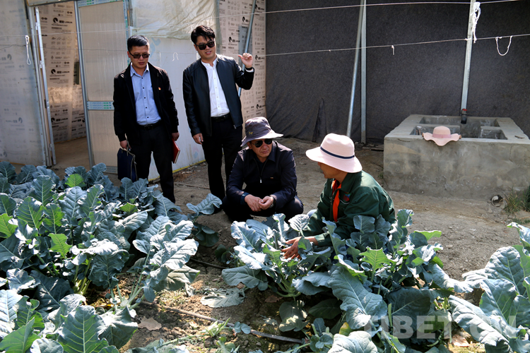 圖為(wei) 次仁頓珠(左邊第三個(ge) 戴灰色太陽帽為(wei) 次仁頓珠)深入基層了解老百姓溫室菜棚經營情況