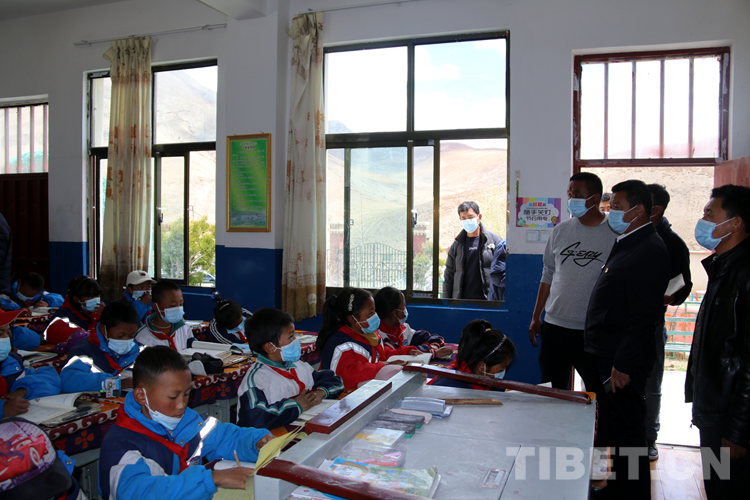 圖為(wei) 次仁頓珠在白朗縣轄區某小學視察教學工作、慰問學校師生