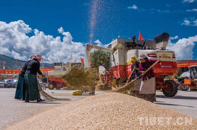 圖為(wei) 2019年9月6日,2019•西藏“中國農(nong) 民豐(feng) 收節”暨紮囊縣氆氌文化節期間,西藏自治區山南市紮囊縣羊噶居委會(hui) 機械化打麥現場 攝影:趙耀