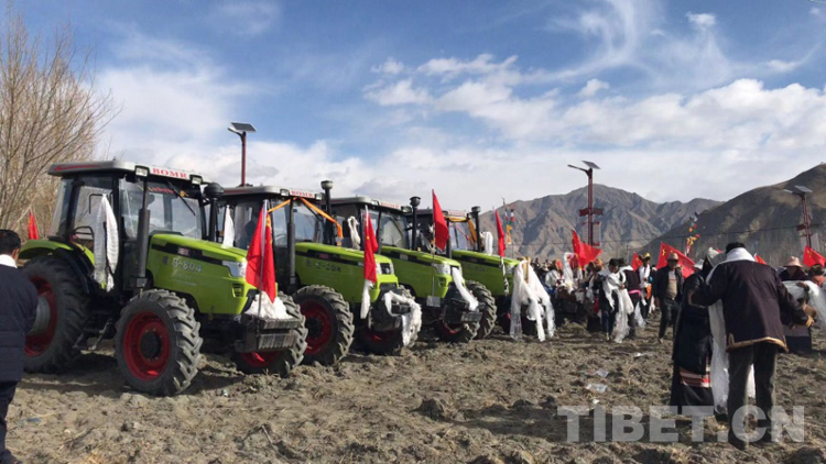 圖為(wei) 西藏農(nong) 民開耕儀(yi) 式上的機械化工具 攝影:拉加當周