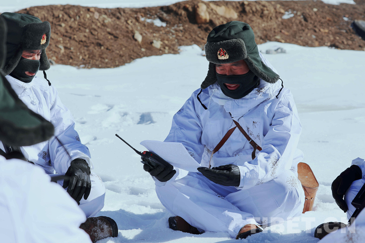 圖為(wei) 阿裏軍(jun) 分區某邊防團官兵在巡邏路上學習(xi) 黨(dang) 的二十大精神 攝影:劉曉東(dong)