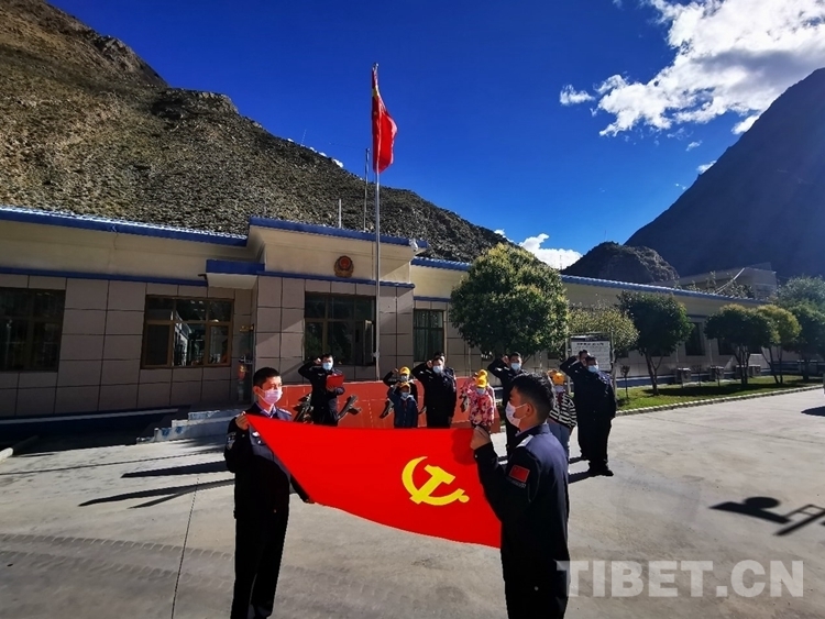 圖為(wei) 民警帶領金東(dong) 鄉(xiang) 小學學生前往林芝朗縣國門教育講習(xi) 所開展紅色教育 攝影:徐華升