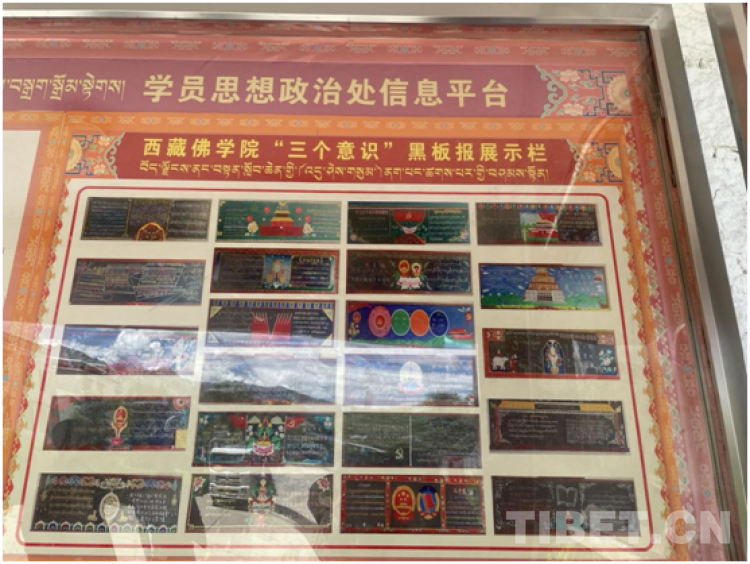 圖為(wei) 西藏佛學院“三個(ge) 意識”黑板報展示欄