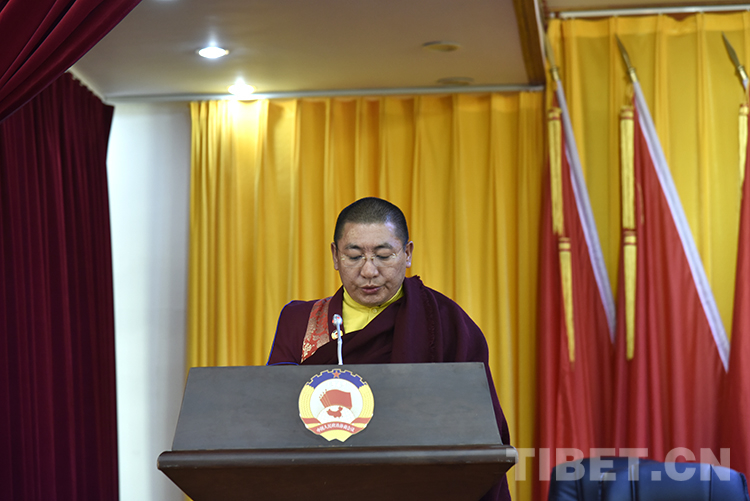 圖為(wei) 12月12日,拉薩市政協十二屆三次會(hui) 議第二次全體(ti) 會(hui) 議現場,宗教界委員曲仲·阿旺強久旦增加措發言 攝影:王媛媛