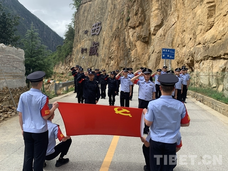 圖為(wei) 林芝邊境管理支隊察瓦龍邊境派出所與(yu) 怒江邊境管理支隊丙中洛邊境檢查站開展聯合黨(dang) 日活動 攝影:劉光紅
