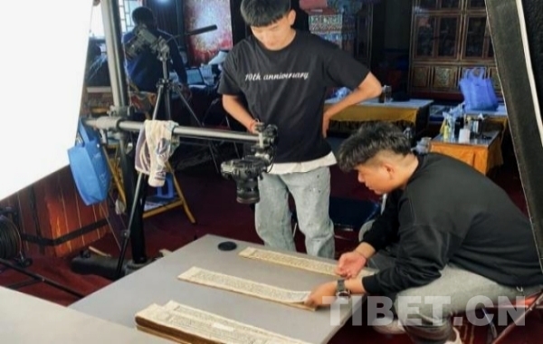 圖為(wei) 2021年,西藏民族大學實習(xi) 生在布達拉宮藏經閣拍攝古籍文獻