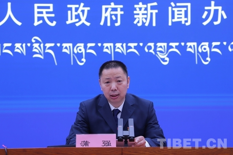 圖為(wei) 西藏自治區氣象局黨(dang) 組副書(shu) 記、局長蒲強介紹相關(guan) 情況