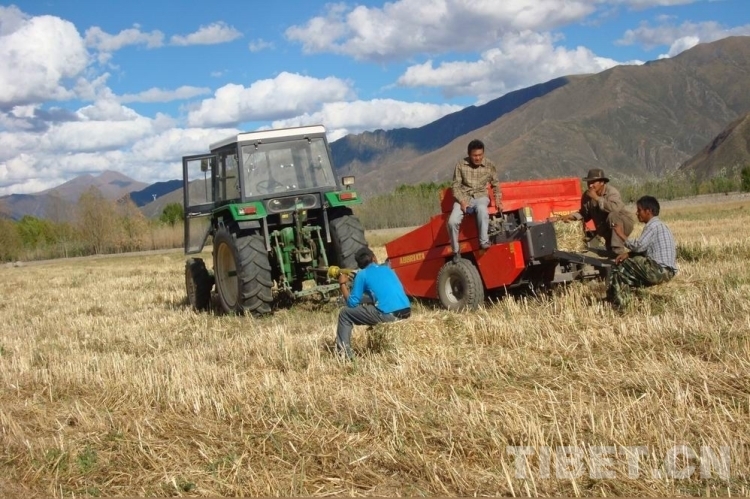 圖為(wei) 西藏自治區農(nong) 牧科學院草業(ye) 科學研究所科技人員正在開展飼用燕麥青幹草打捆試驗示範