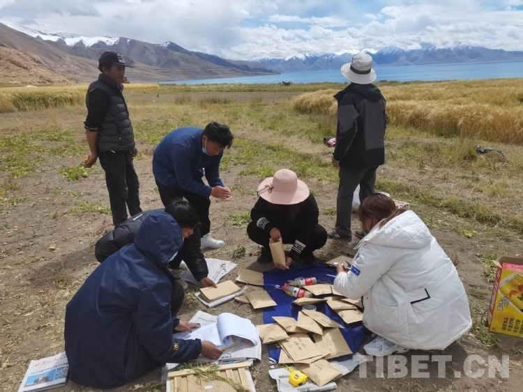 圖為(wei) 西藏自治區農(nong) 牧科學院草業(ye) 科學研究所科技人員在那曲市尼瑪縣文布南村開展農(nong) 作物第三次普查工作