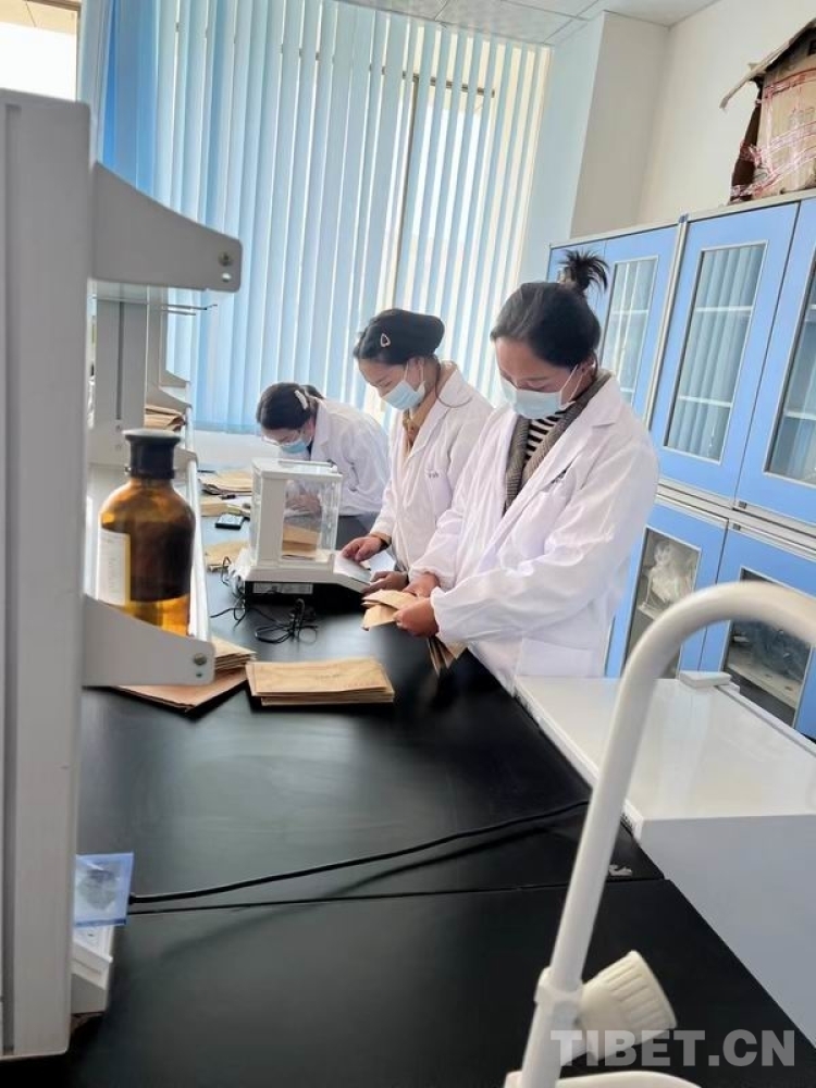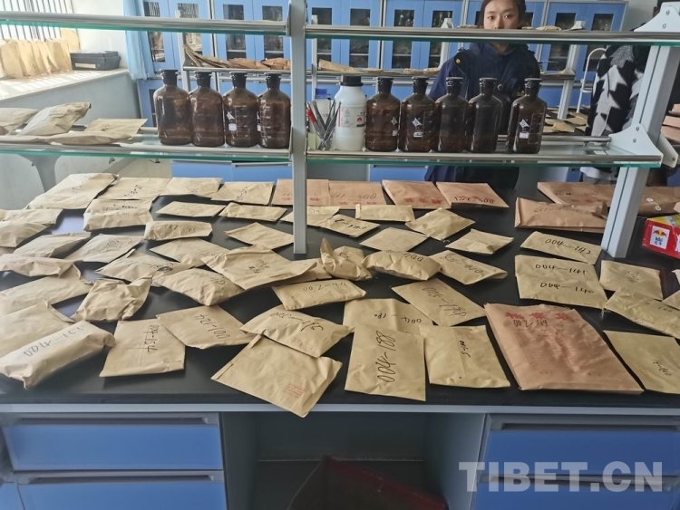 圖為(wei) 西藏自治區農(nong) 牧科學院草業(ye) 科學研究所科技人員將采集到的牧草種質資源在實驗室內(nei) 預處理