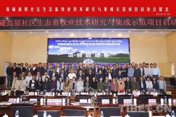 圖為(wei) 2018年8月“青藏高原社區生態畜牧業(ye) 技術研究與(yu) 集成示範”項目啟動會(hui) 的會(hui) 議合影。該項目是西藏科研團隊承擔的科技部重點研發項目