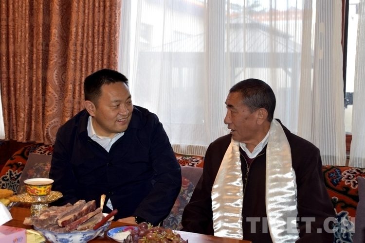 走訪慰問過程中,嘎瑪澤登和大家互獻哈達並促膝而坐、親(qin) 切交談,共同回憶光輝發展曆程,共話美好幸福明天。每到之處嘎瑪澤登都詳細詢問他們(men) 的身體(ti) 狀況和工作生活情況,感謝他們(men) 長期以來為(wei) 社會(hui) 和諧發展作出的努力和貢獻,並祝願他們(men) 新年愉快,健康平安。
