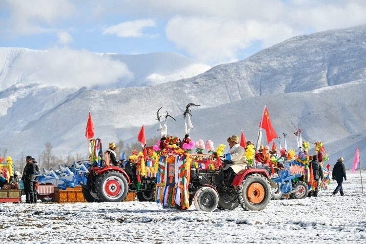 3月16日,拉薩周邊再次出現降雪天氣,隨著春日暖陽的烘曬,很快春雪化成春水滋潤了田地。當天,西藏自治區拉薩市達孜區唐嘎鄉(xiang) 唐嘎村開啟春耕首日第一犁。