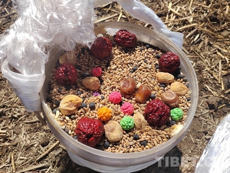 圖為(wei) 唐嘎村春耕儀(yi) 式現場,即將播撒的種子 攝影:次旦拉姆