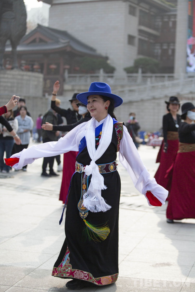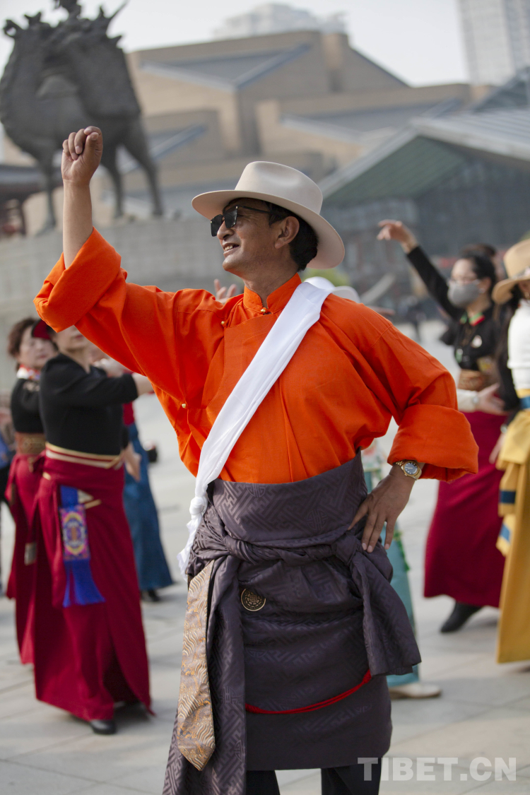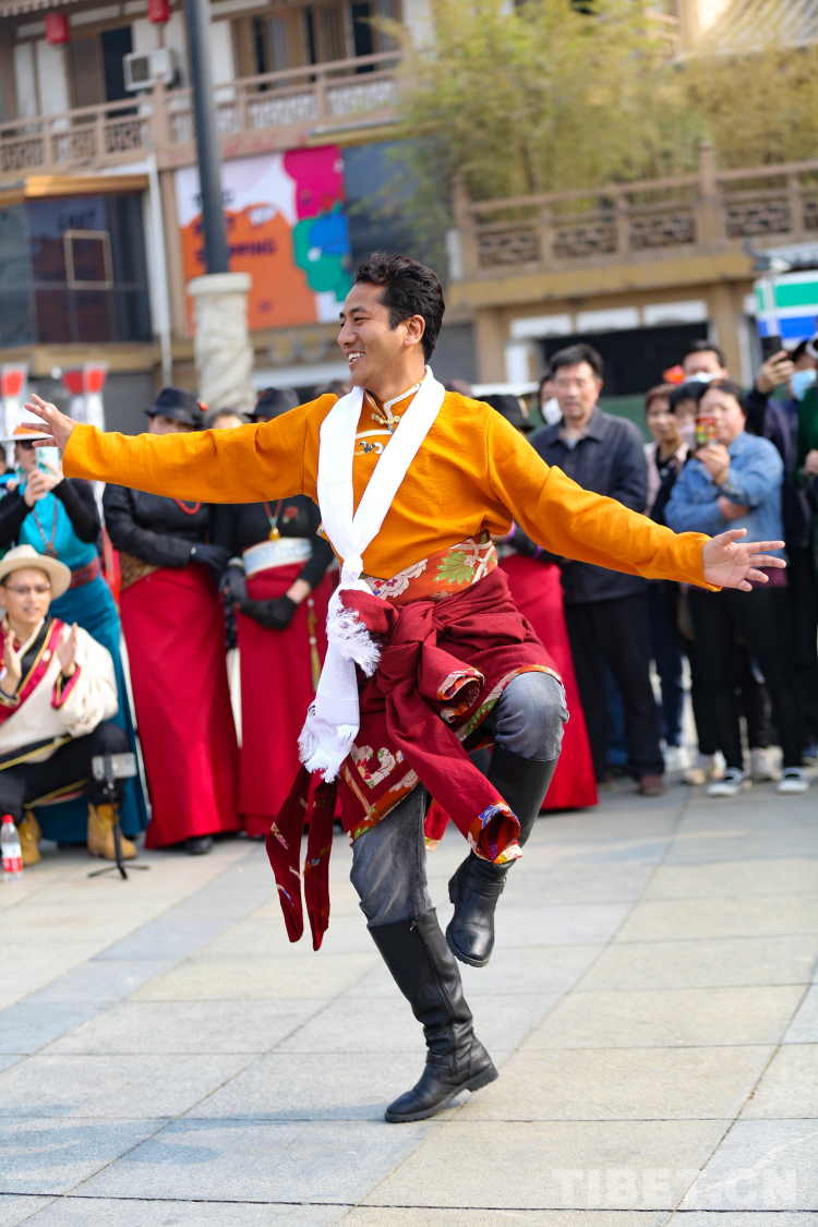 圖為(wei) 大唐西市活動現場 多傑尼瑪正在領舞 攝影:呂靜