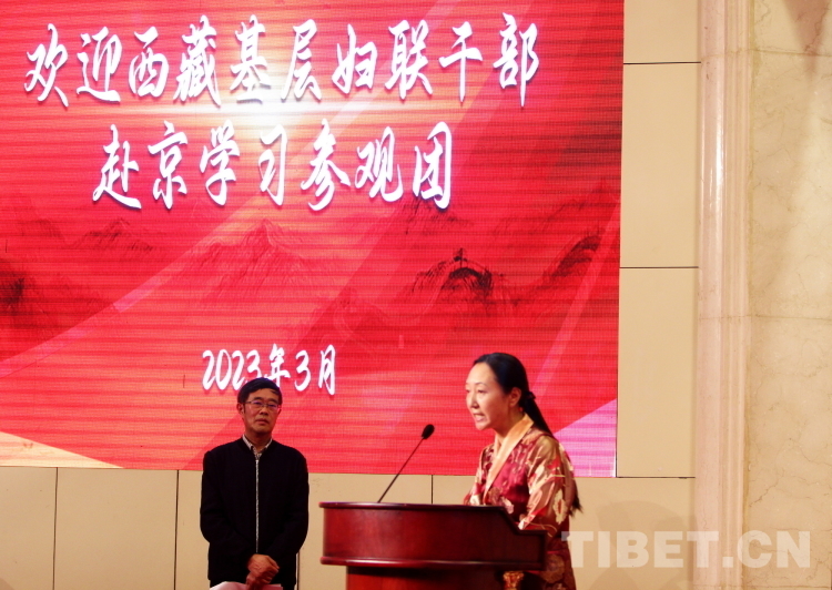 圖為(wei) 西藏自治區婦聯黨(dang) 組成員、副主席澤仁卓嘎(右一)在北京建藏援藏工作者協會(hui) 在北京西藏大廈為(wei) “2023年西藏基層婦聯幹部赴京學習(xi) 參觀團”成員們(men) 舉(ju) 行的歡迎會(hui) 上發言 攝影:劉莉