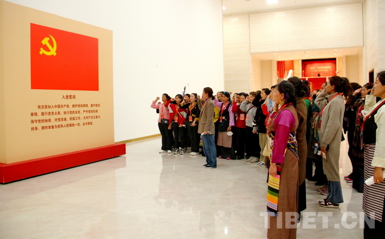圖為(wei) “2023年西藏基層婦聯幹部赴京學習(xi) 參觀團”成員們(men) 在中國共產(chan) 黨(dang) 曆史展覽館重溫入黨(dang) 誓詞 攝影:劉莉