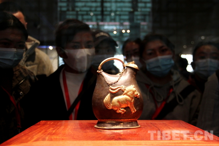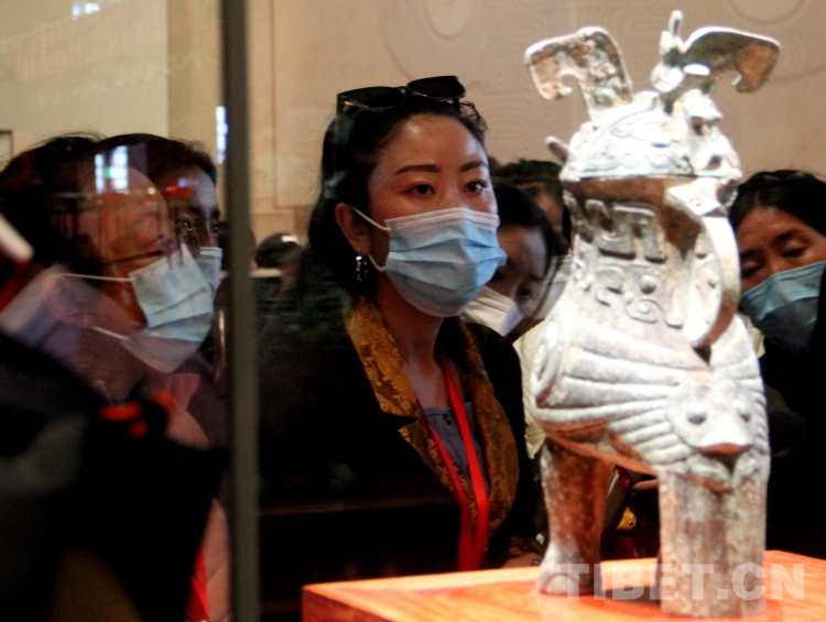 圖為(wei) 2023年西藏基層婦聯幹部赴京學習(xi) 參觀團成員們(men) 在中國工藝美術館·中國非物質文化遺產(chan) 館內(nei) 欣賞唐代文物鎏金舞馬銜杯紋銀壺的複製件 攝影:劉莉